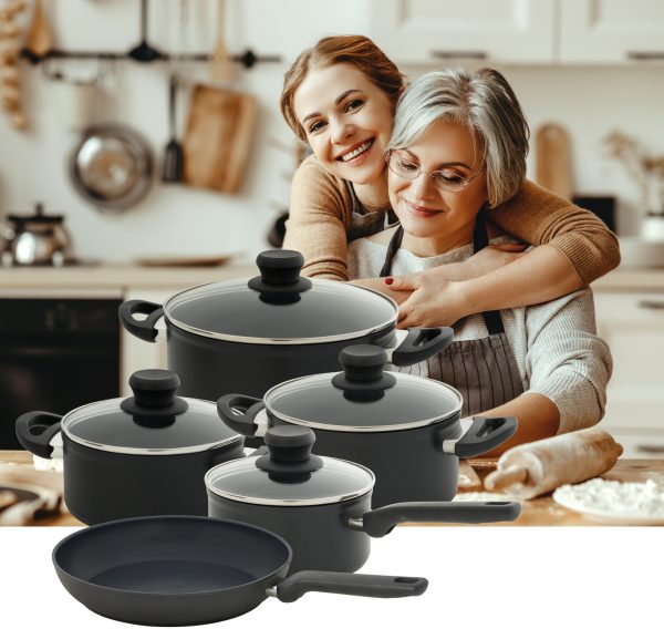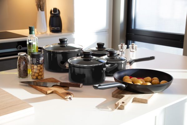 Settet inneholder 4 gryter og 4 lokk samt 28cm stekepanne.